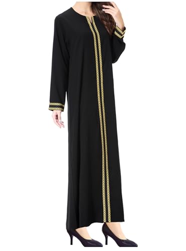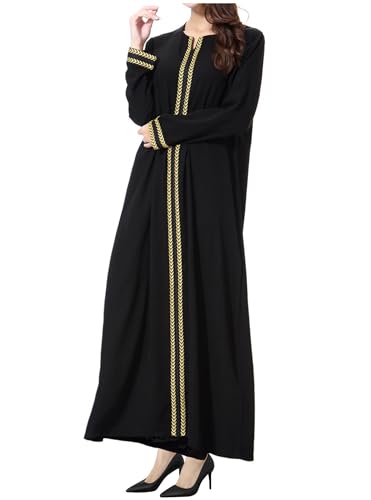• Feature:Solid color, golden embroidery, round collar, long sleeve, ankle length, muslim clothes for women, dubai attire for women, islamic dresses for women, evening dress long sleeve and maxi dress, abaya for big girls.