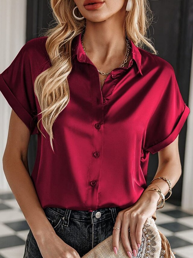 More information about Women's Valentine Shirt Blouse Business Solid Color Regular Tops Short Sleeve Shirt Collar Buttons Regular Fit Work Formal Modern Casual Wear Red Green Gray Summer