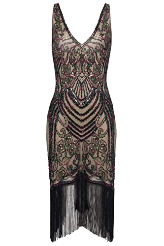 BABEYOND Flapper Dresses 1920s V Neck Beaded Fringed Great Gatsby Dress 1