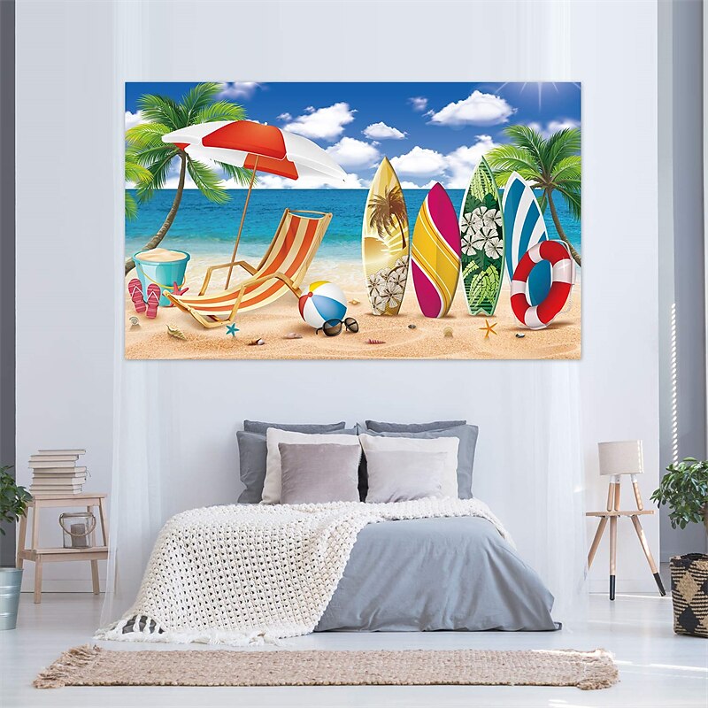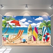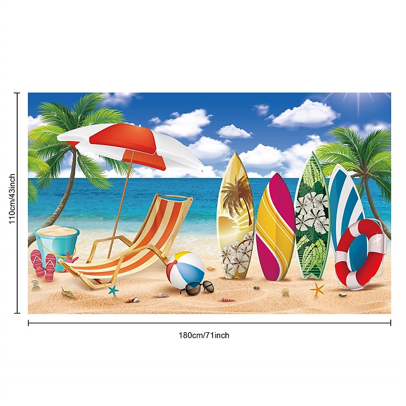 HOT ! Hawaiian Party Backdrop Banner Beach Themed Surfboard Party Decorations Tropical Beach Background for Themed Birthday Baby Shower Weddings Party Decoration Supplies(Order size 6*4ft )