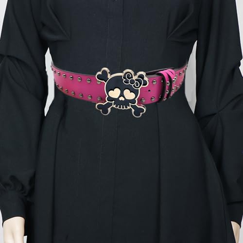 HOT ! Skull Buckle PU Belt For Women 2000s Subcultures Rivets Studded Waist Belt For Teenager Waiststrap For Pants