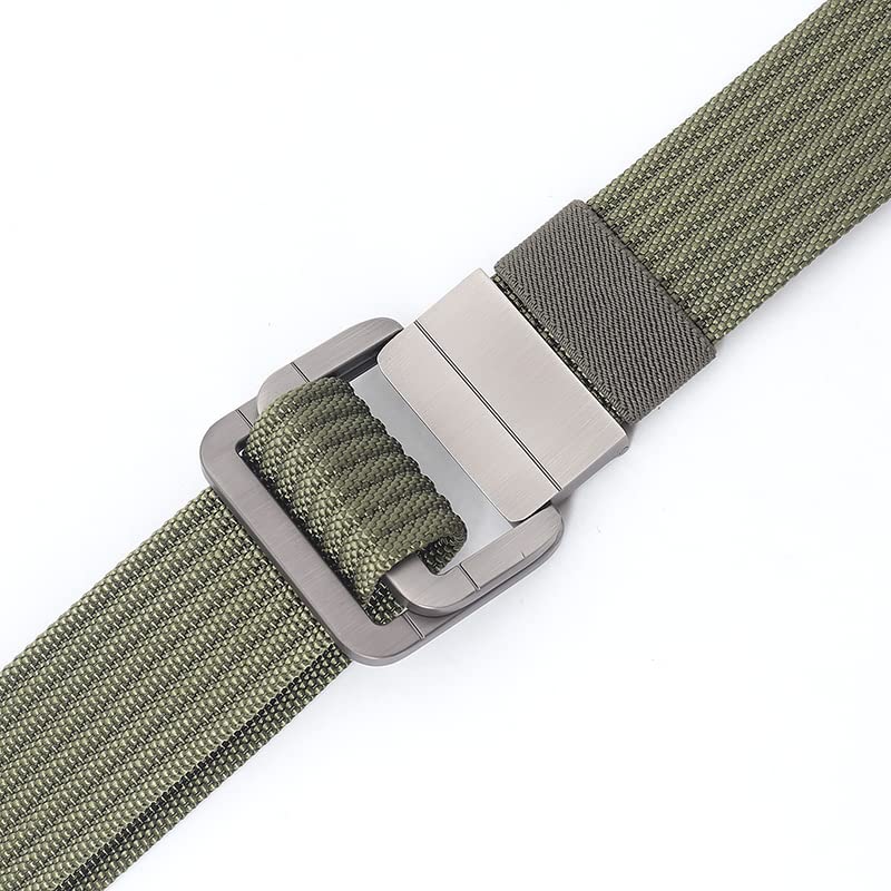 Adjustable Alloy Dual Ring Buckle Tactical Belt,Braided Canvas Nylon Military Sports Outdoor Belt for Men & Women - 47 Inch 7