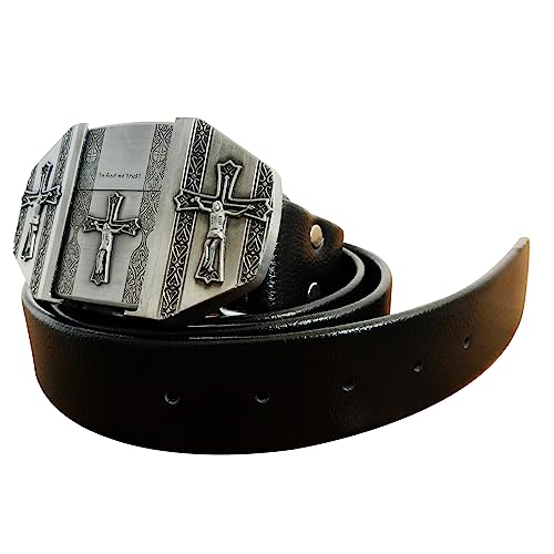 • ✝【High Quality Material】 We Will Provide You With 1 Leather Belt For Men, Jesus Cross Belt Buckle Design, Symbolizing Peace, Peace, Piety To Bring You God'S Blessing.
