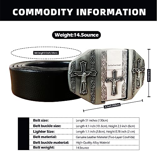 More information about Jesus Cross Men Leather Belts,Hidden Lighter Vintage Western Cowboy Black Waist Belt For Pants Jeans-In God We Trust