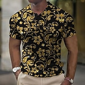 HOT ! Men's Baroque Waffle Polo Shirts Golf Shirt Short Sleeve Polo Shirts Collared Shirts Vacation Wear Party Outfits Buttons 3D Print Summer Spring Black