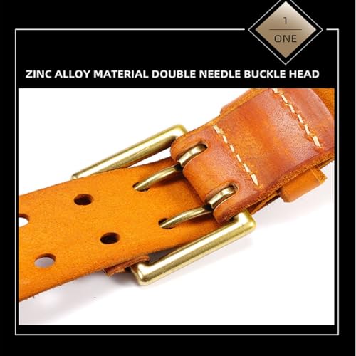 Men’s Classic Leather Belt, Double Prong Retro Style, Antique Brass Buckle, 1 ½” Width,Gifts for Men 5