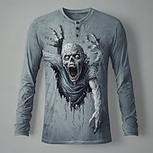 More information about Men's Halloween Graphic Zombies Henley Shirt Long Sleeve Fashion Cute Daily Casual Holiday Going out Fall Spring & Fall Gray Henley Henley T-Shirt