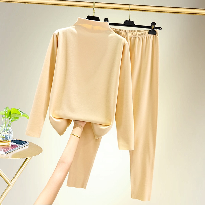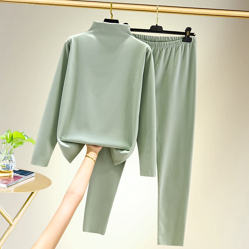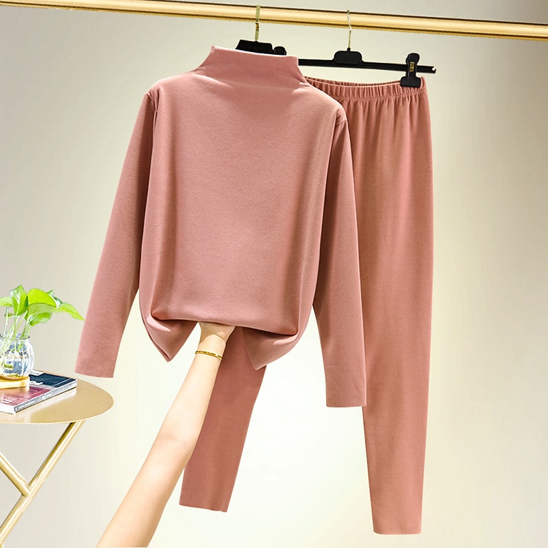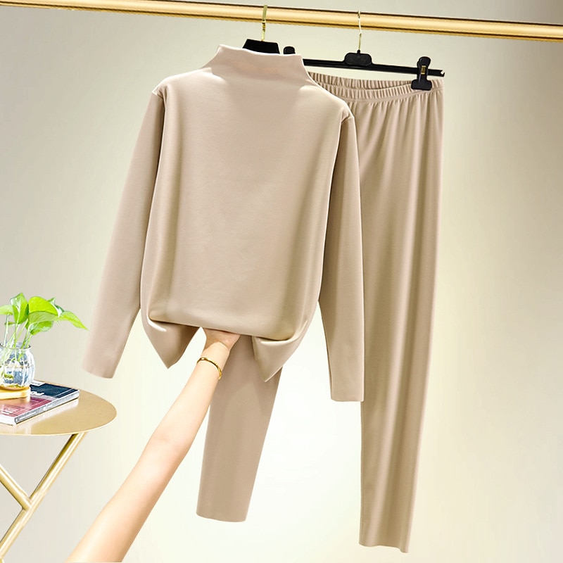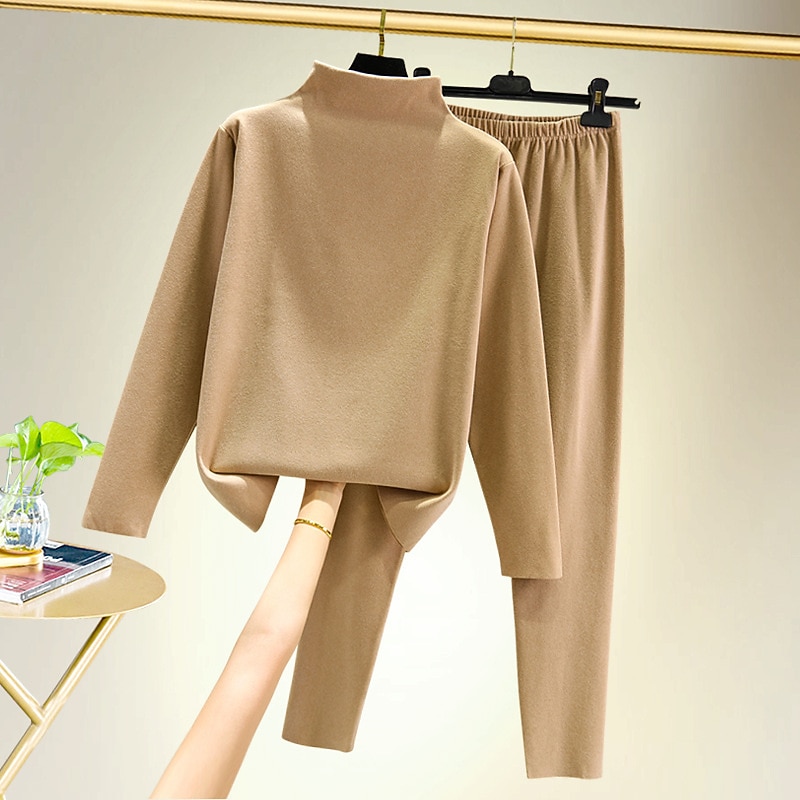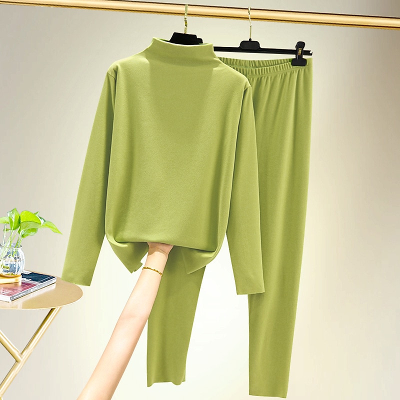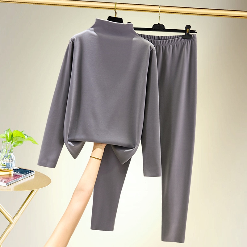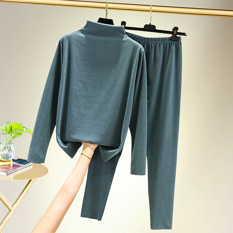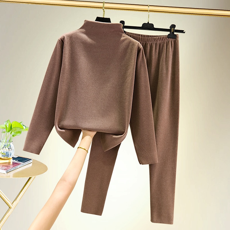 More information about Women's T shirt Tee Undershirt Pants Sets Bottoming Shirt Casual Daily Basic Long Sleeve Crew Neck Turtleneck Black Fall & Winter Home Outfits