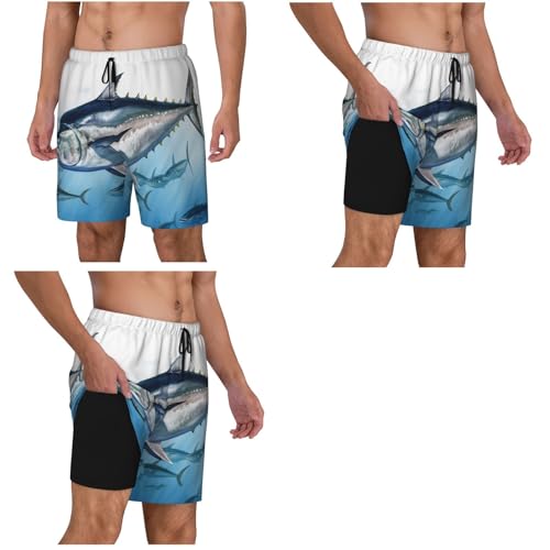 Men's Swim Trunks Quick Dry Board Shorts Bluefin Tuna Thunnus Beach Shorts with Pocket Bathing Suits for Men 5
