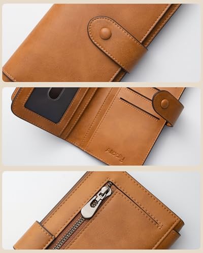 HOT ! RFID Blocking Leather Wallet for Women, Slim Trifold with 14 Card Slots and Zipper Pocket (Brown)