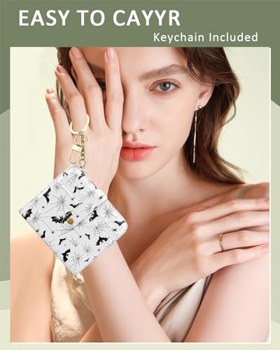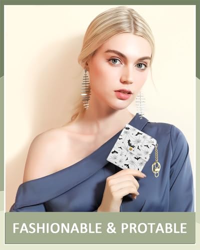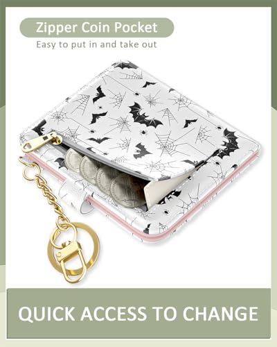 Womens Wallet, RFID Small Wallets for Women, Slim Compact Credit Card Holder, Cute Leather Bifold Ladies Purse with Zipper Coin Pocket and ID Window, Gothic Bats 6