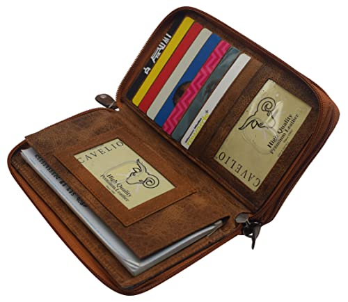 HOT ! Women RFID Blocking Wallet Leather Zip Around Phone Clutch Large Travel Purse (Tan)