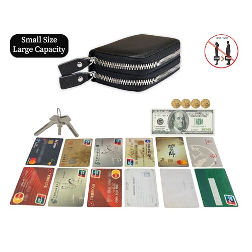 • Materials and craftsmanship - Made from high quality leather and high density polyester lining, this credit card wallet has a textured feel, is soft and lightweight, durable and easy to clean. This credit card wallet has a classic vintage look with a waxed finish on the exterior. The double zip design is neatly crafted, attractive and layered and has been tested in various tensions for resistance to damage.