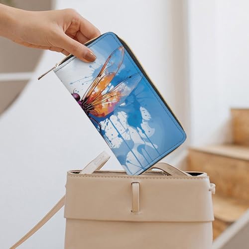Leather Wallet Bag Colorful Abstract Dragonfly Painted Credit Card Holder Fashion Simple Card Bag Multifunctional Wallet 1