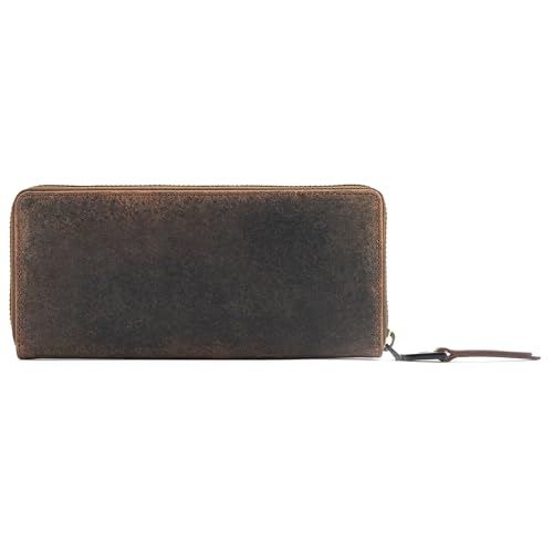 HOT ! BERLINER BAGS Vintage Genuine Leather Wallet Palma, RFID Blocking Credit Card Holder, Slim Womens Wallet, Zip Around Wallet for 14 Cards, Bills, Coins, ID Window - Brown