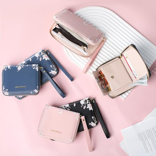 • 【Elegant & Stylish Floral Medium Wallet】This women wallet is made of soft PU leather and decorate with a golden brand logo, combining elegance and practicality, using a zipper closure to make your cards and cash secure. Get it, let it becomes one of your fashion accessories.