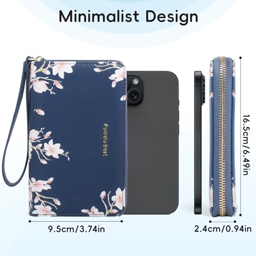More information about Pomelo Best Wallets for Women Leather RFID Blocking Zipper Around Credit Card Holder Wristlet Medium Wallet for Ladies Blue 2025