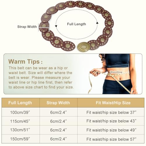 • Design: This wide belt is uniquely designed with western vintage style design elements, giving it a classic yet fashionable look. This wide disc belt is easy to match and suitable for dresses, skirts, sweaters, shirts, down jackets or other clothes.