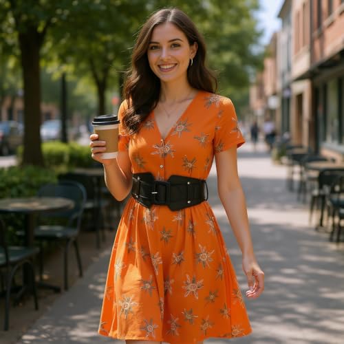 • Wide Belts for Women:Built to last, this belt combines stretch-resistant elastic with scratch-proof PU leather that mimics genuine leather’s luxe feel. The reinforced metal buckle resists tarnishing,Lightweight yet sturdy, it won’t dig into your skin or slip out of place—perfect for dancing at weddings or gothic party.A favorite for themed events like Renaissance fairs, cosplay conventions, or VIP soirées, it’s the ultimate accessory for fashion risk-takers