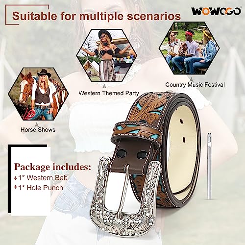 HOT ! Western Belts for Women Cowgirl Cowboy Country Belt Turquoise Rhinestone Leather Belt Brown Plus Size Belt