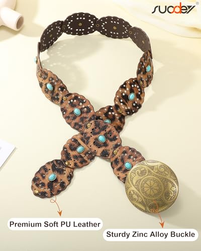 SUOSDEY Wide Western Disc Belt for Woman Cowgirl Cowboy Boho Country Leather Waist Belts for Jeans Dress Skirt 5
