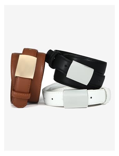 Womens Belts for Jeans Dresses Pants Trendy Ladies Waist Belt with Gold/Silver Square Buckle 3