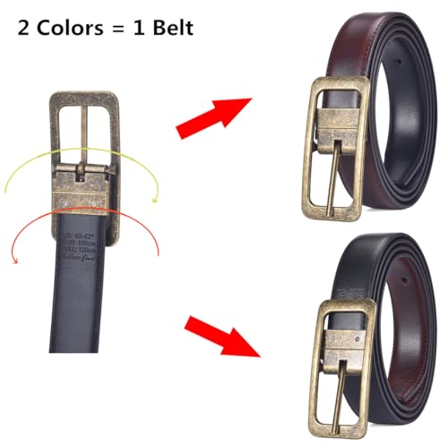 Women's Reversible 1.1" Leather Belts for Jeans Pants Dresses with Vintage Gold Buckle 1