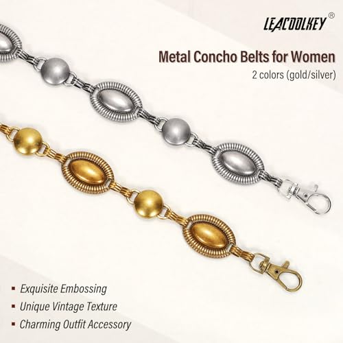 HOT ! LEACOOLKEY Western Metal Chain Belt for Women Boho Decorated Waist Belt for Dresses Jeans Pants, Gold