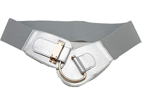 More information about Women Elastic Fashion Faux Leather Belt Hip Waist Gold Metal Buckle Fits S M Metallic Silver Color