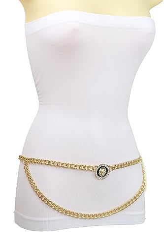 Women Fashion Belt Hip High Waist Gold Metal Chain Links Bling Lion Coin Charm XS S M 1