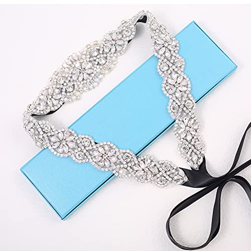 Wedding Sash Bridal Belt with Rhinestones Headband Crystal Bride Bridesmaids Sash for Gown 6