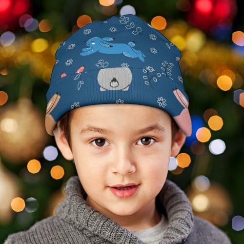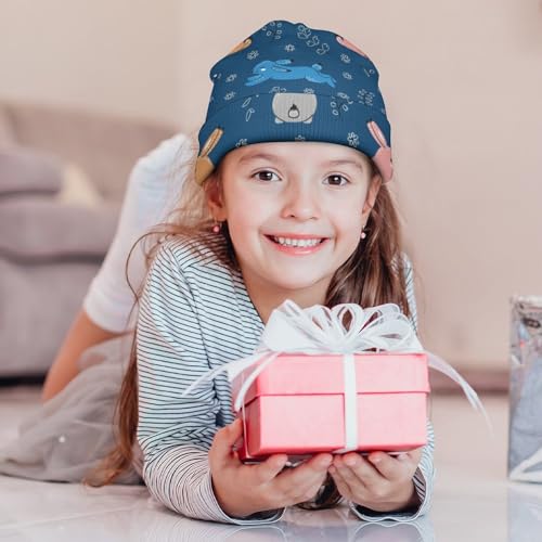 Cute Rabbit Pattern Kids Beanie Hat for for Girls Boys Children Cap Winter Knitted Chemo Cancer Headwear Accessories Gifts Decoration Black 7