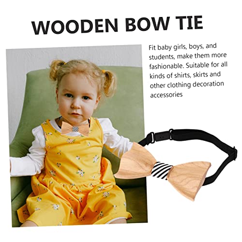CLISPEED Novelty Wooden Bowtie for Boys and Girls Pre-tied Festival Suit Accessory Decorative Bowknot Tie for Children Adjustable Size for Weddings and Parties 5