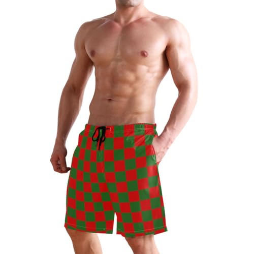 Red and Green Buffalo Checkered Mens Swim Trunks Quick Dry Beach Shorts with Pocket S 6
