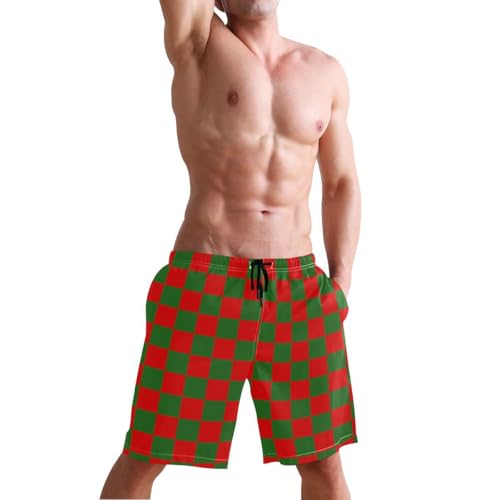Red and Green Buffalo Checkered Mens Swim Trunks Quick Dry Beach Shorts with Pocket S 1