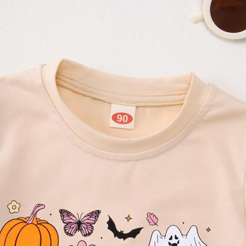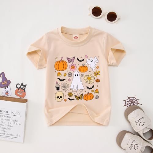 IZYJOY Toddler Baby Girl Halloween Shirt Cute Ghost Pumpkin Floral T-Shirt Kids Spooky Season Short Sleeve Tee Fall Tops 4
