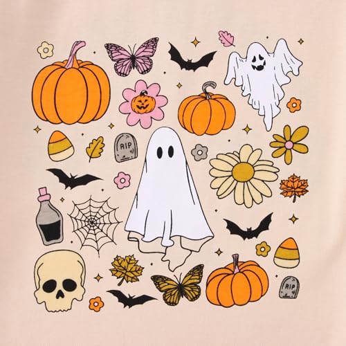 IZYJOY Toddler Baby Girl Halloween Shirt Cute Ghost Pumpkin Floral T-Shirt Kids Spooky Season Short Sleeve Tee Fall Tops 6