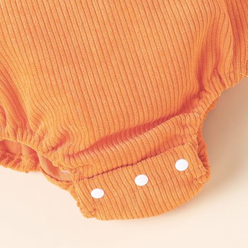 Newborn Baby Girl Clothes Ruffle Backless Pumpkin Romper Bodysuit Infant Fall Outfit with Headband 7