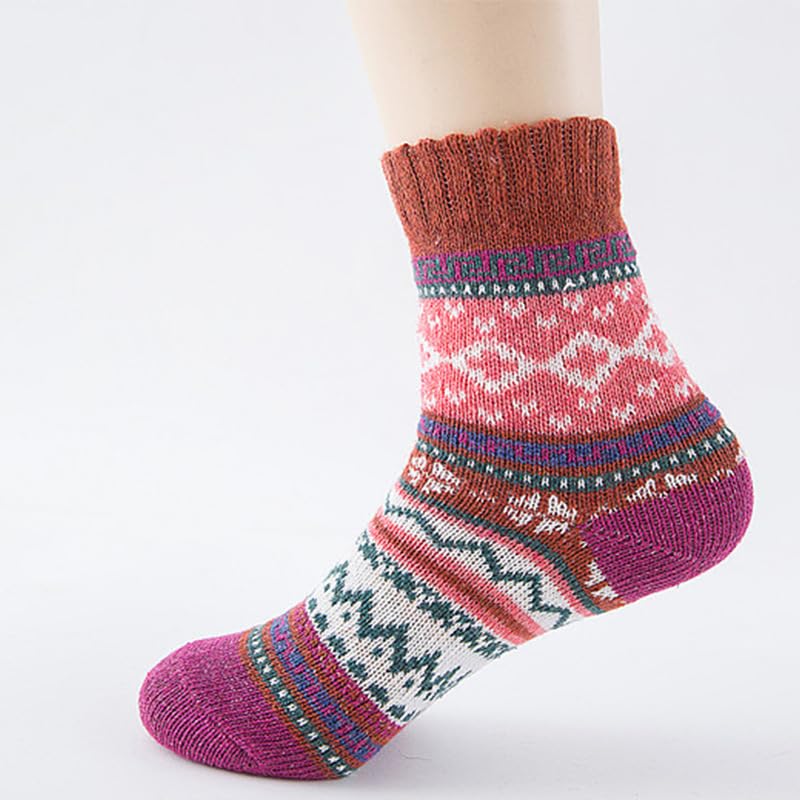 HOT ! Vintage Cozy Thick Wool Socks 5 Pairs Nordic Strip Knit Warm Boot Socks Fairy Grunge Thermal Hiking Crew Socks