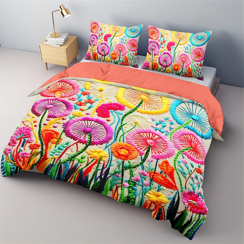 Floral Quilt Art Pattern Duvet Cover Set Comforter Set Soft 3-Piece Luxury Cotton Bedding Set Home Decor Gift King Queen Full Size 7