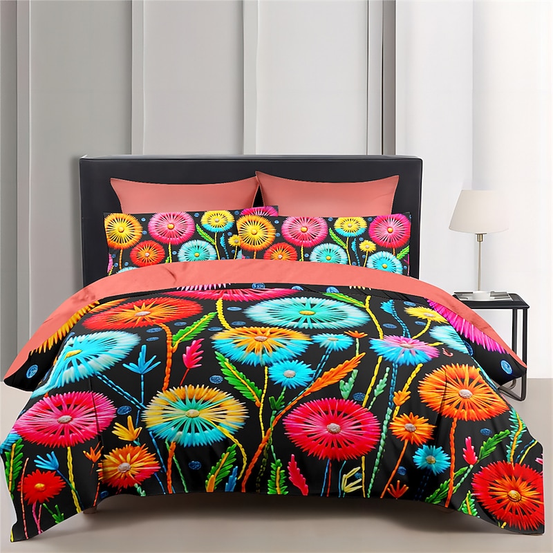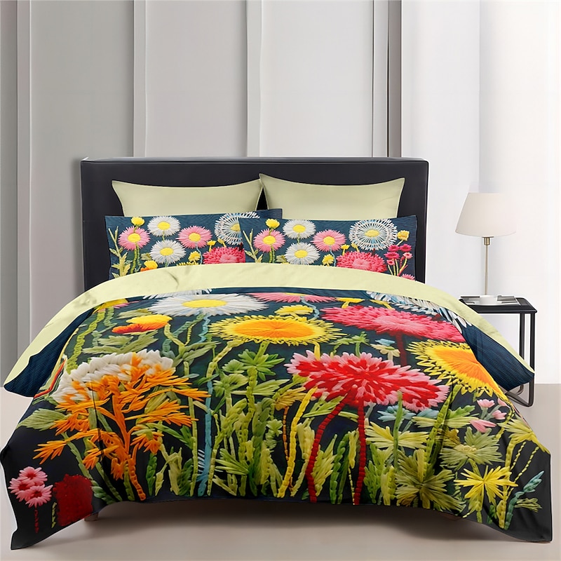 Floral Quilt Art Pattern Duvet Cover Set Comforter Set Soft 3-Piece Luxury Cotton Bedding Set Home Decor Gift King Queen Full Size 5
