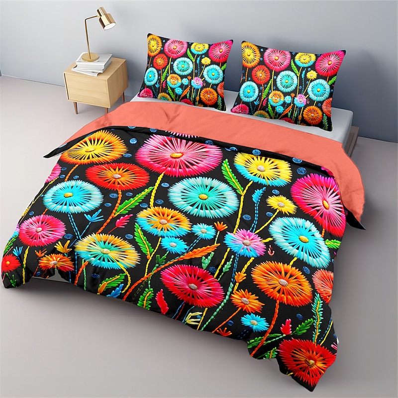 Floral Quilt Art Pattern Duvet Cover Set Comforter Set Soft 3-Piece Luxury Cotton Bedding Set Home Decor Gift King Queen Full Size 9