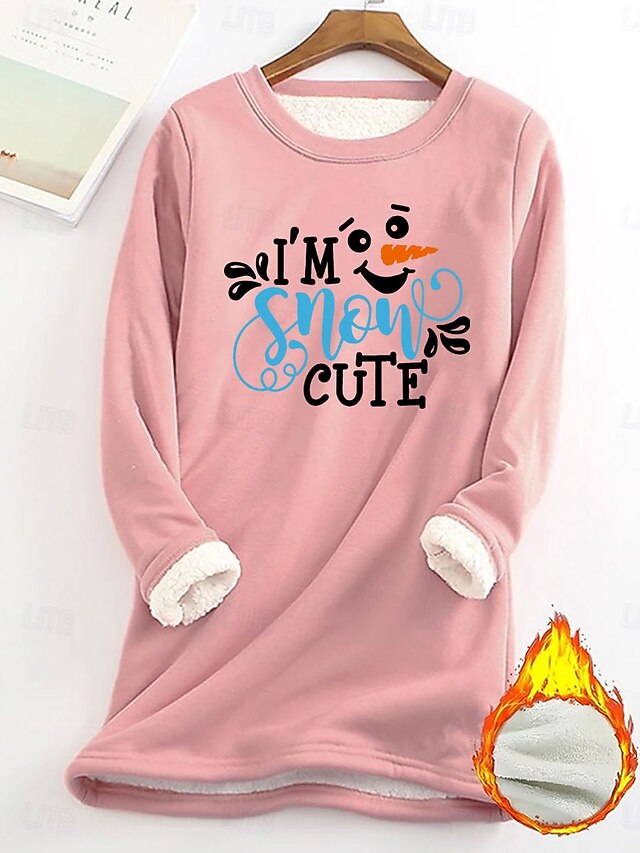 More information about Women's Pullover Sweatshirt Graphic Letter Warm Casual Fuzzy Long Sleeve Round Neck Regular Tops Street Casual Light Pink Black Dark Pink Blue Spring Fall Winter