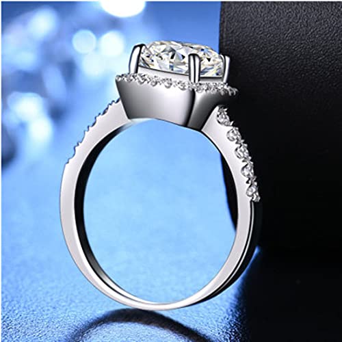 18K White Gold Plated 2CT Zircon Diamond Engagement Ring for Women Sterling Silver Jewelry Halo Cushion Ring 6