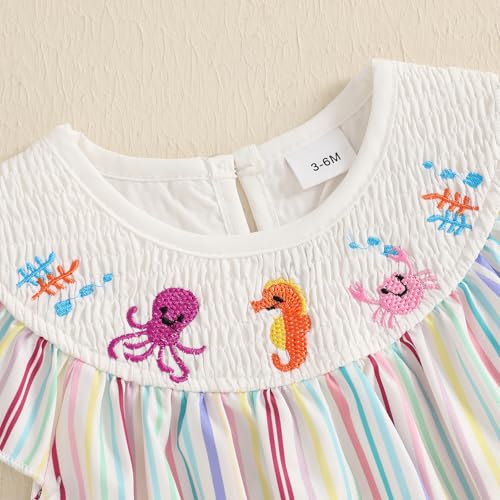 • Adorable Design: Crab seahorse octopus embroidery, striped print, sleeveless, round neck, bottom snap closure, newborn summer clothes girl, newborn girl summer sleeveless romper, smocked octopus outfit baby girl, baby girl vacation outfits, ocean themed baby clothes, infant crab clothing baby girl