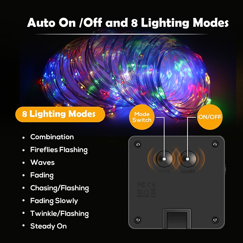 Christmas String Lights 10m LED String Lights 100 LEDs Solar Outdoor Waterproof Leather String Light String Halloween Christmas Starry Decoration Light 8