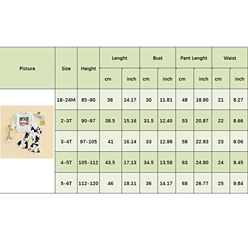 Toddler Kids Girls Clothes Sets Cow Print Long Sleeve Sweatshirt Pullover Flare Pants 2Pcs Fall Winter Outfits 7