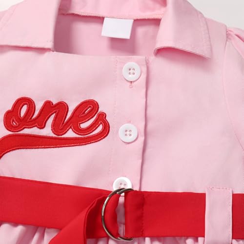 • Baseball Birthday Dress Design: Cute baseball baby girl outfit for baseball one year old birthday pictures. Short sleeve turn-down collar softball dress, square-cut neckline, embroidered letter "One/ 1" in red on the chest, sleeve and back, make the clothing stylish and vivid for a striking effect. With 3 buttons fastening at the front, a removable belt at waist. Dress made of skin-friendly cotton, comfy to wear. Your little princess will be the most eye-catching one in the crowd;