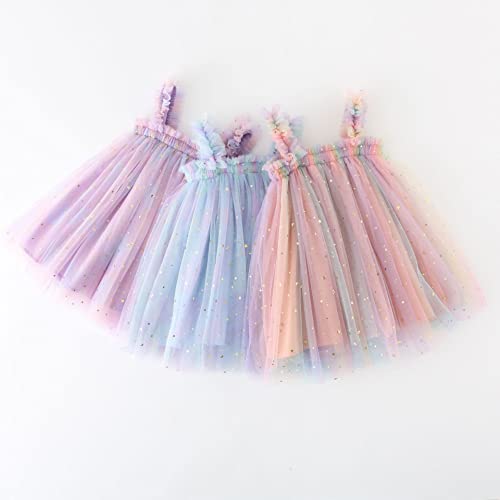 Baby Girl Tutu Rainbow Dresses, Toddler Tulle Sleeveless Sequin Stars Dress, Princess Layered Soft Dress Birthday Outfit 2