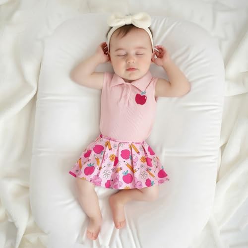 • CASUAL DESIGN: Cute first day of school outfit for toddler girls; Baby girl tank top with apple embroidery, sleeveless, button detail and lapel design; Pleated skirt with elastic waist for easy fit; Your baby will feel comfortable and cool in summer
